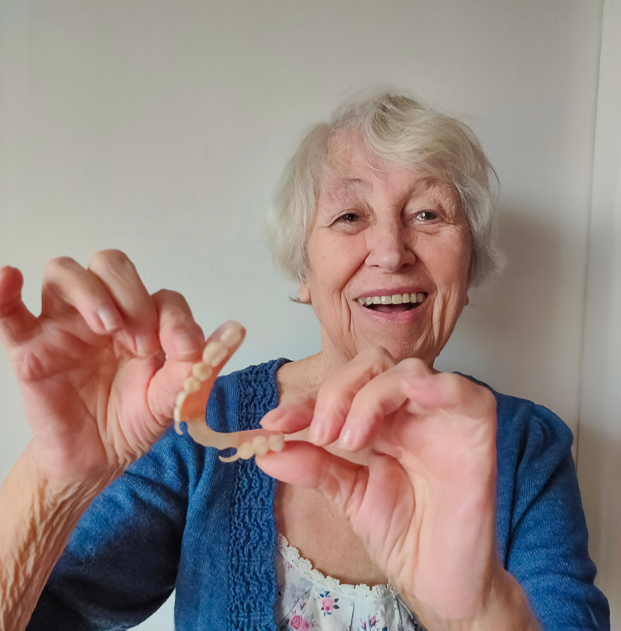 Proper care is essential to extend the life of your dentures. They should be cleaned daily using a soft brush and denture cleanser to remove food particles and plaque. Dentures should be removed at night to allow your gums to rest. Regular dental check-ups are important to ensure the dentures continue to fit properly and to maintain overall oral health.