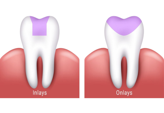 An onlay covers one or more “cusps” of your teeth – a cusp is the projection on teeth that help you chew your food. An inlay does not replace any cusps.