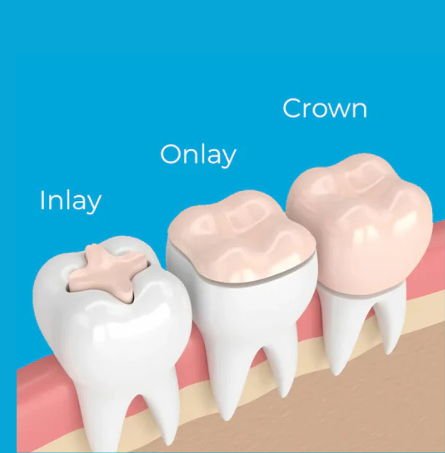 An onlay covers one or more “cusps” of your teeth – a cusp is the projection on teeth that help you chew your food. An inlay does not replace any cusps.