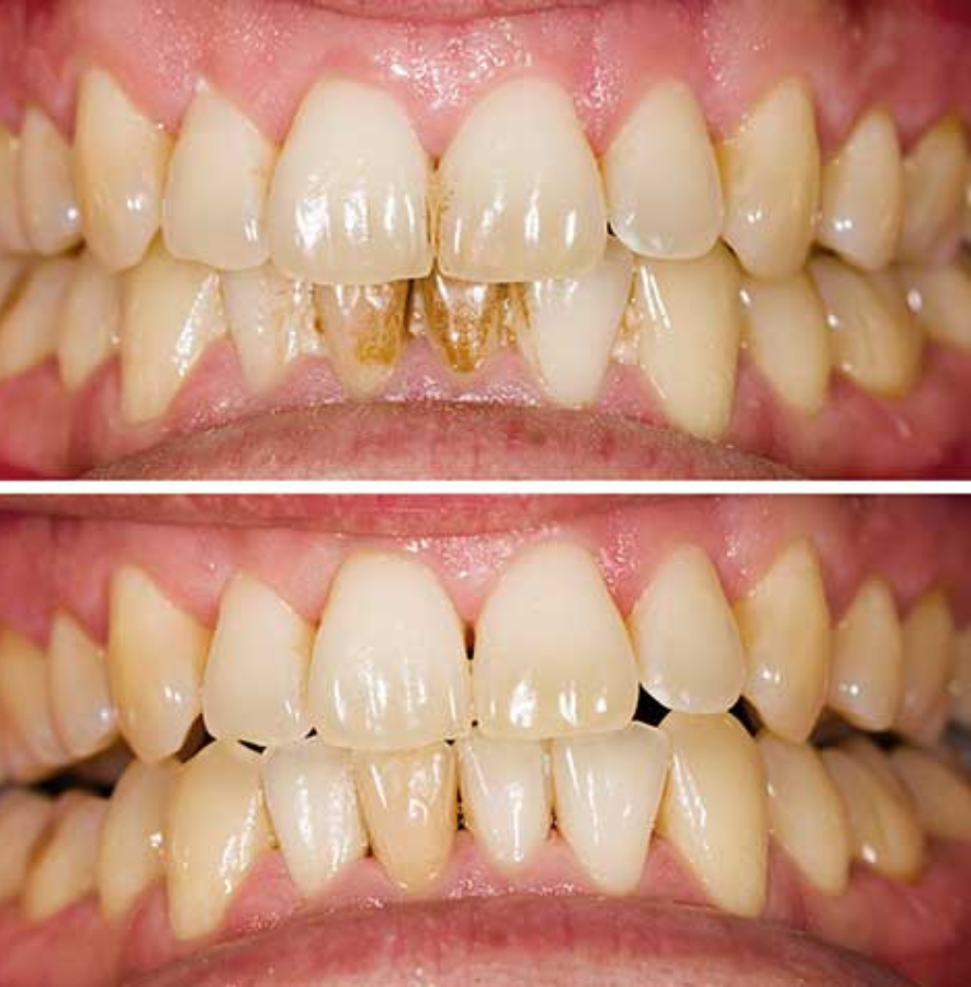 - 1. Scaling – Ultrasonic instruments are used to remove the plaque or tartar without disturbing or damaging the soft tissues. Mechanism of the process is, ultrasonic vibrations loosen and break down the plaque or tartar. Water is sprayed on the teeth continuously to wash away the debris.